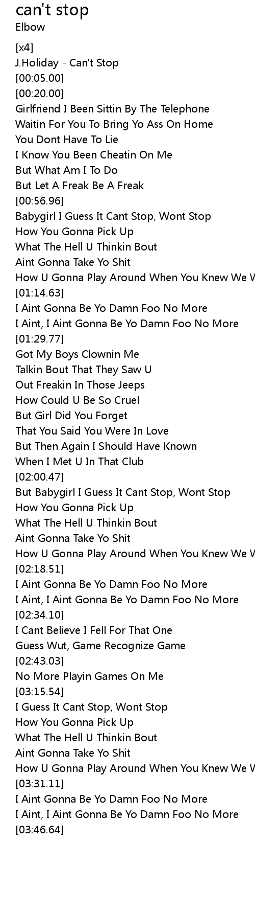 [00:57.18] Babygirl I Guess It Cant Stop, Wont Stop