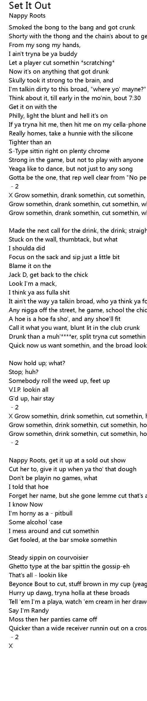 X Grow somethin, drank somethin, cut somethin, what (set it out) |