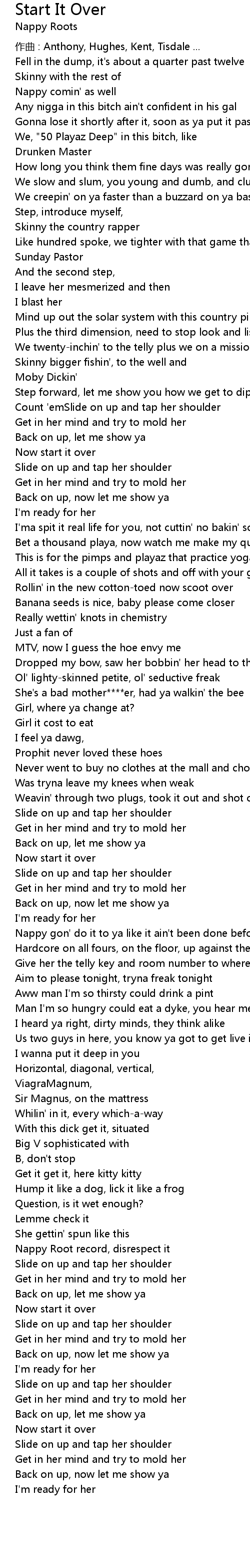 | Nappy gon' do it to ya like it ain' t been done before | |