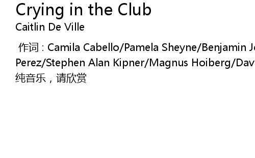 | [00:00.000] | zuo ci : Camila Cabello Pamela Sheyne Benjamin Joseph Levin Nathan Perez Stephen Alan Kipner Magnus Hoiberg David Martin Frank Sia Kate I. Furler |