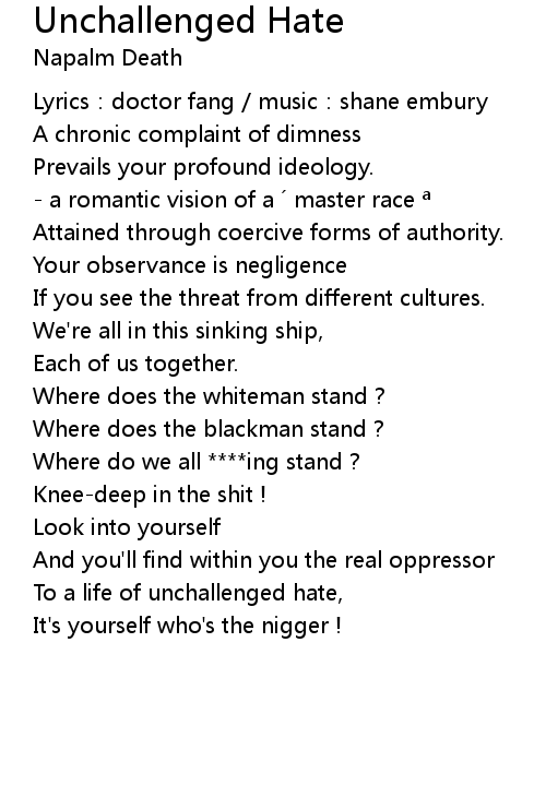 | Song | Unchallenged Hate |