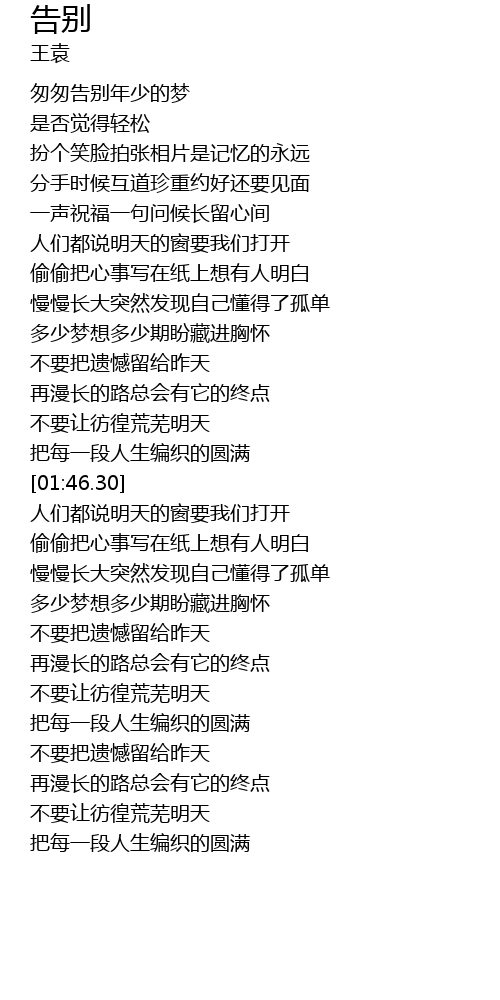 | [00:42.69] | 分手时候互道珍重约好还要见面 |