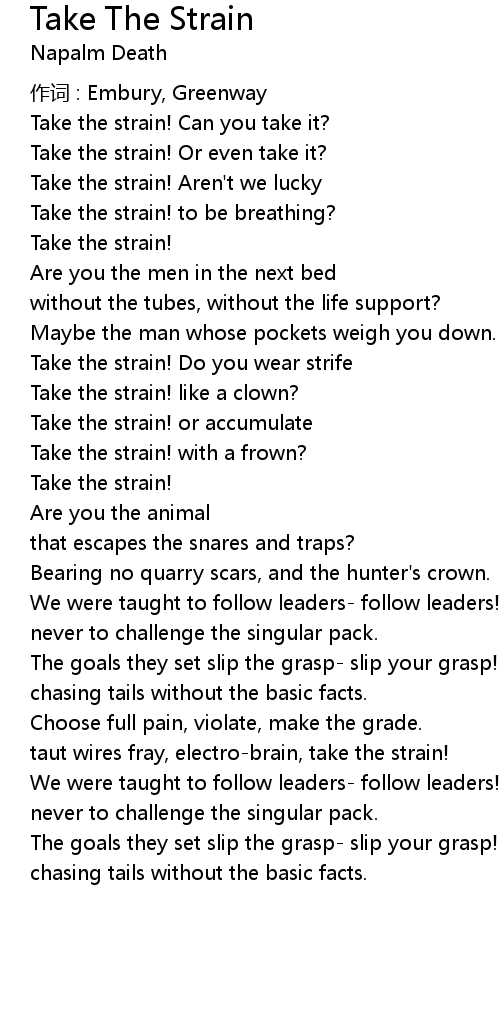 | Song | Take The Strain |