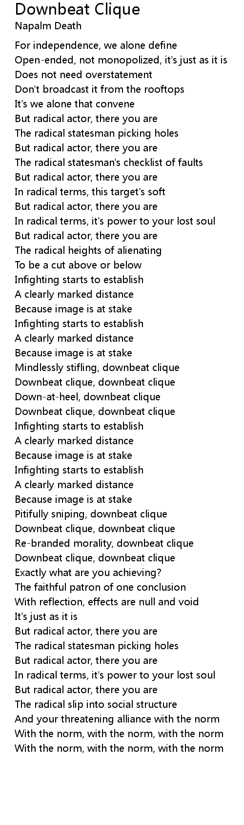 Mindlessly stifling, downbeat clique |