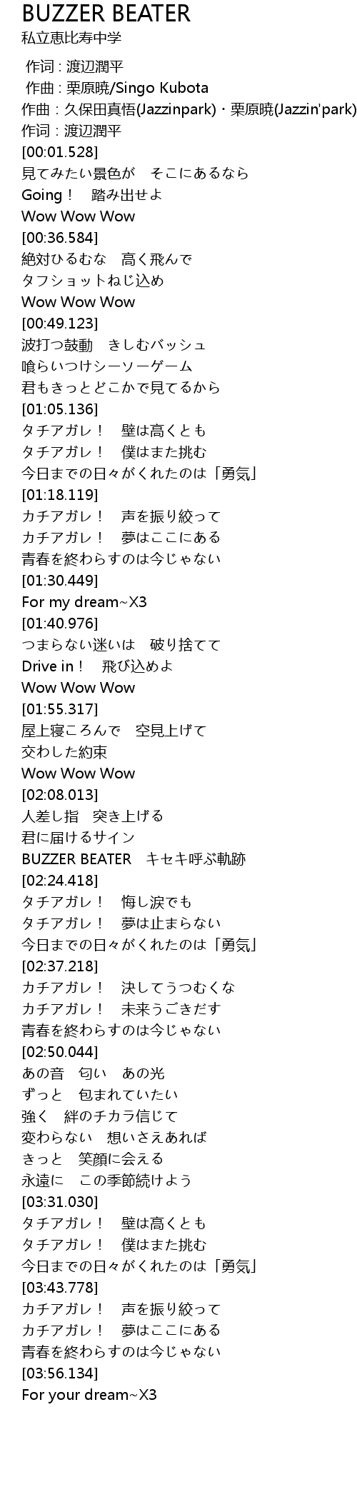 | [02:17.313] | BUZZER BEATER キセキ呼ぶ軌跡 |