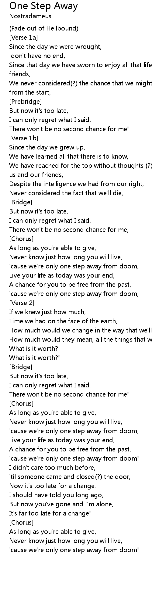 One Step Away Lyrics
