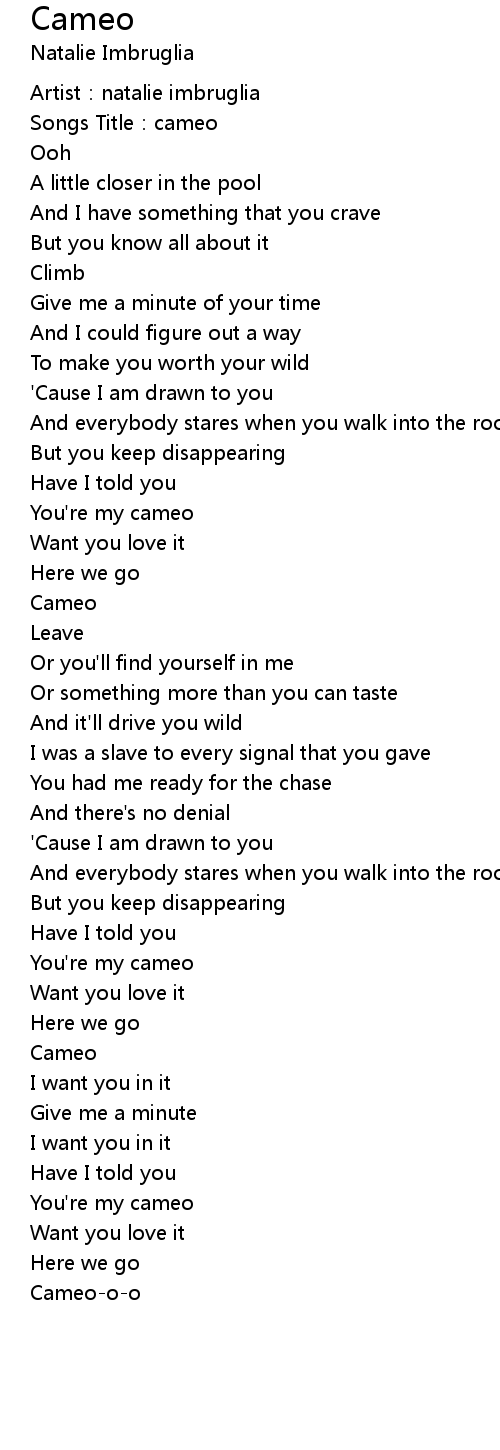 | [03:03.71] | Cameo-o-o |