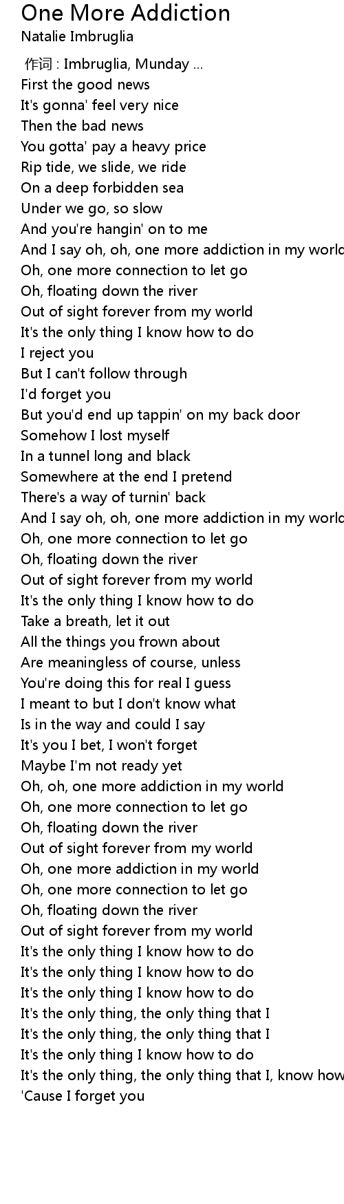 | [00:24.830] | And I say oh, oh, one more addiction in my world |