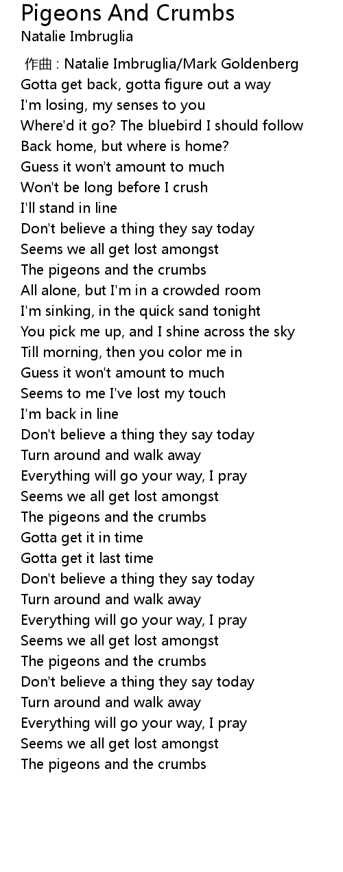 | [00:40.11] | Where'd it go? The bluebird I should follow |