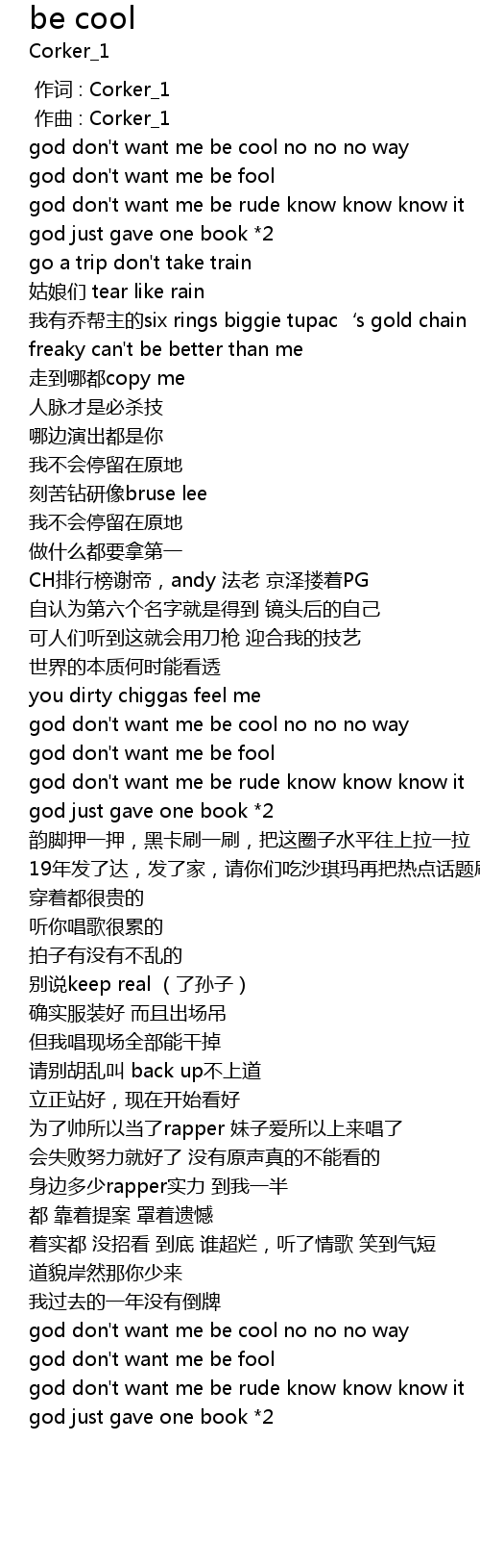 | [02:01.229] | wèi le shuài suǒ yǐ dāng le rapper mèi zǐ ài suǒ yǐ shàng lái chàng le |