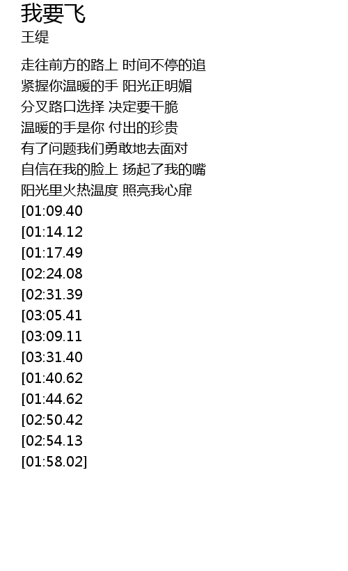 | [02:42.38][01:40.62] | 我要飞 坚持决不后退 |