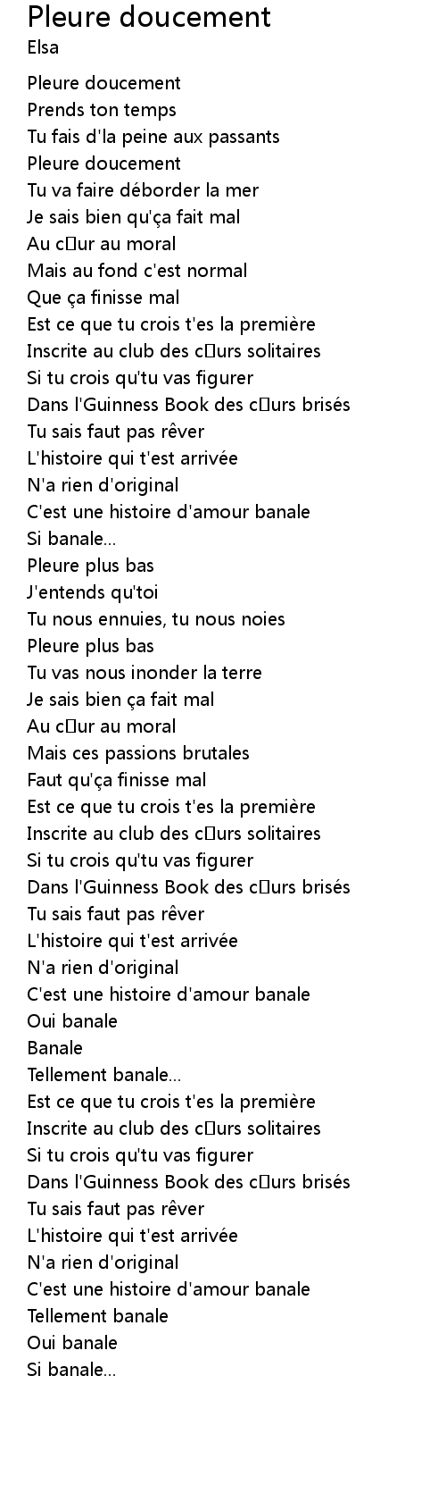 | Song | Pleure doucement |