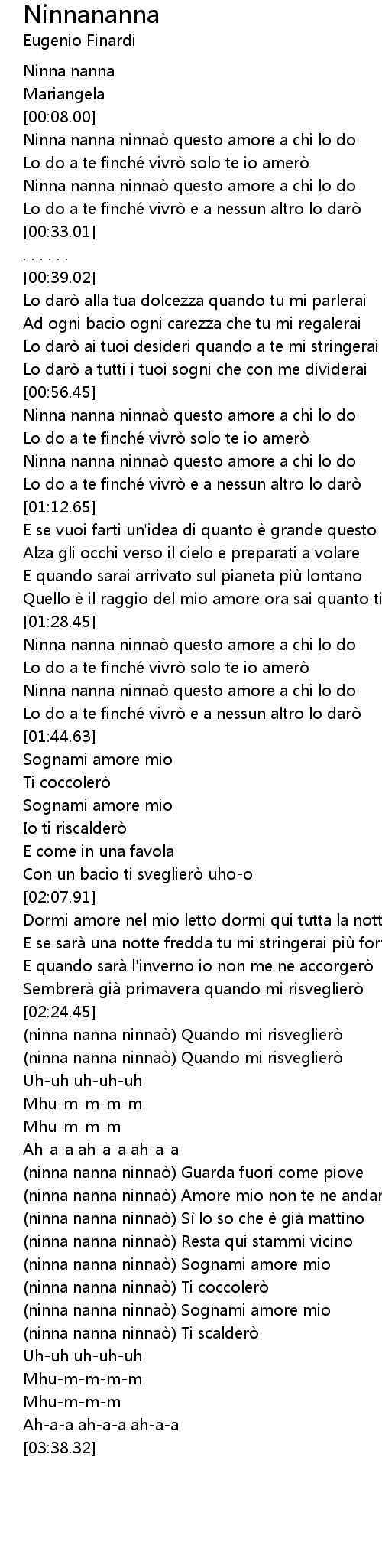 | [02:52.61] | ninna nanna ninnaò Amore mio non te ne andare |