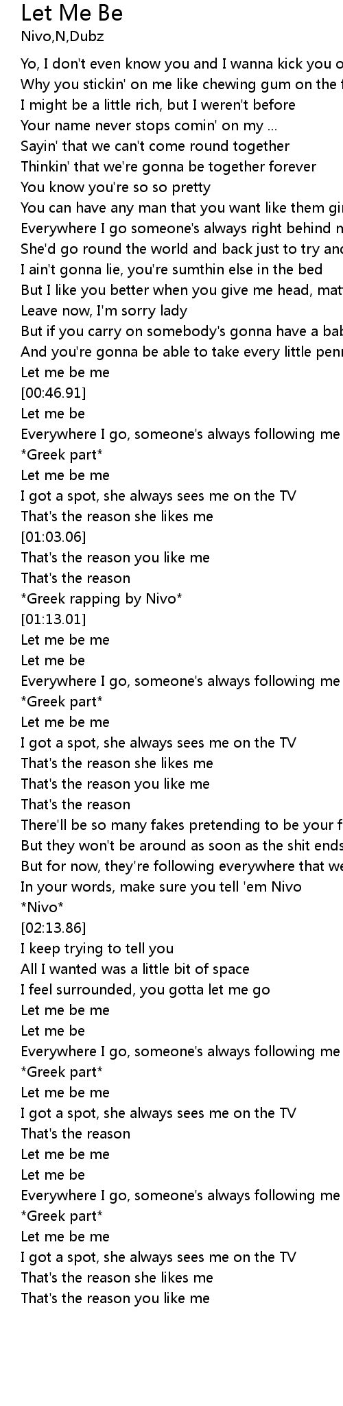 | [01:46.49] | Everywhere I go, someone's always following me |