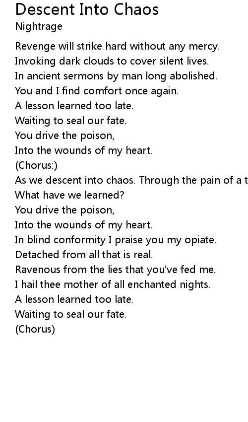 As we descent into chaos. Through the pain of a thousand lifetimes. |