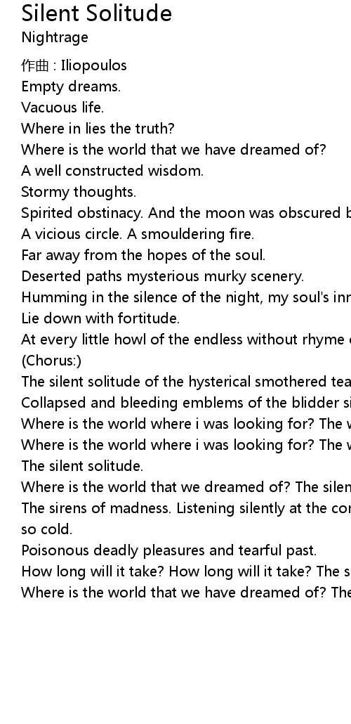 | Where is the world that we dreamed of? The silent solitude. | |