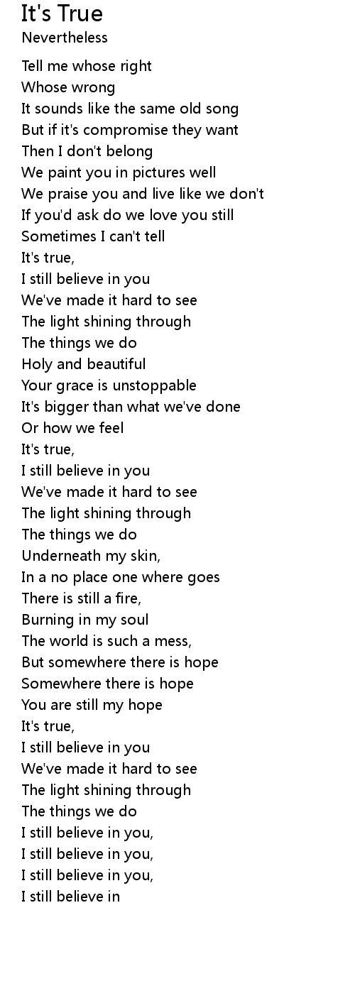 I still believe in |