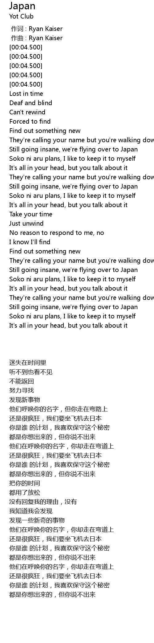 | [00:49.790] | Still going insane, we' re flying over to Japan |