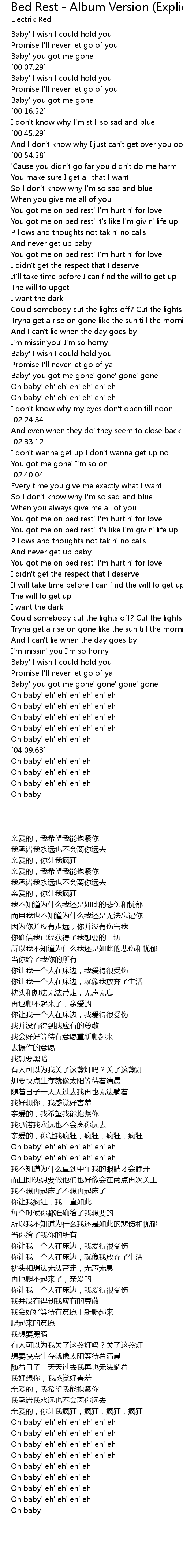 You got me on bed rest' it's like I'm givin' life up |