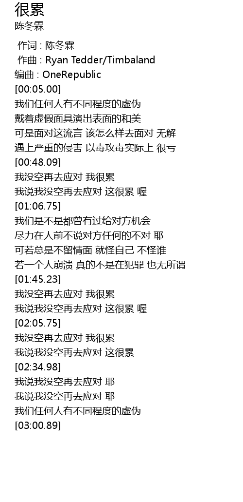 | [00:48.25] | 我没空再去应对 我很累 |
