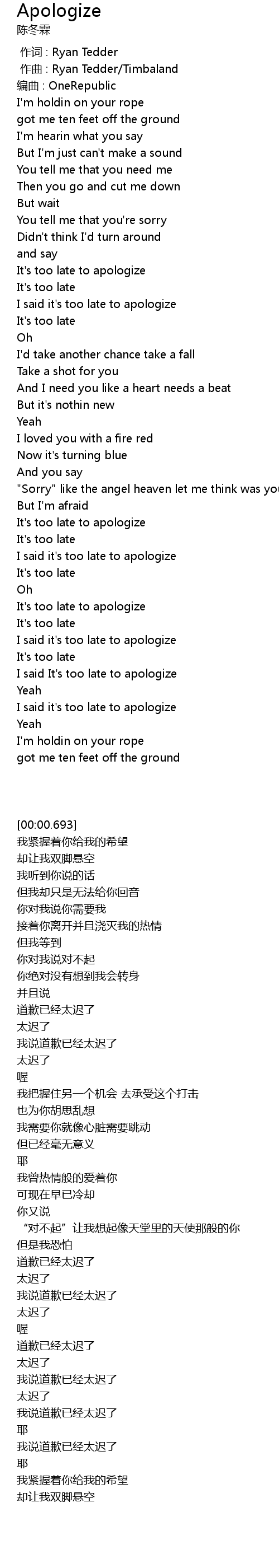 | [00:00.000] | zuò cí : Ryan Tedder |