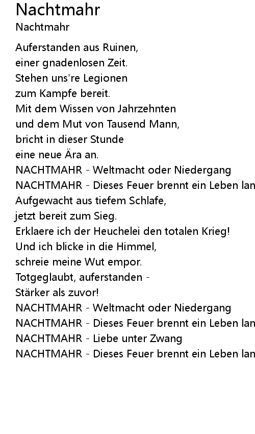 | NACHTMAHR - Dieses Feuer brennt ein Leben lang |