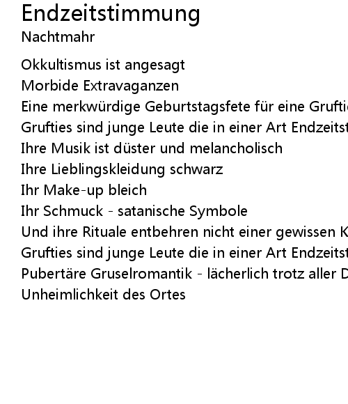 | Grufties sind junge Leute die in einer Art Endzeitstimmung leben | |