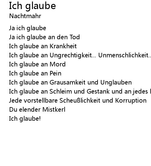 | Ich glaube an Schleim und Gestank und an jedes krabbelnde, brodernde Ding | |