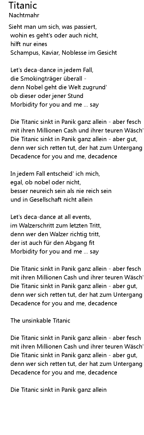 | Die Titanic sinkt in Panik ganz allein aber gut, | |