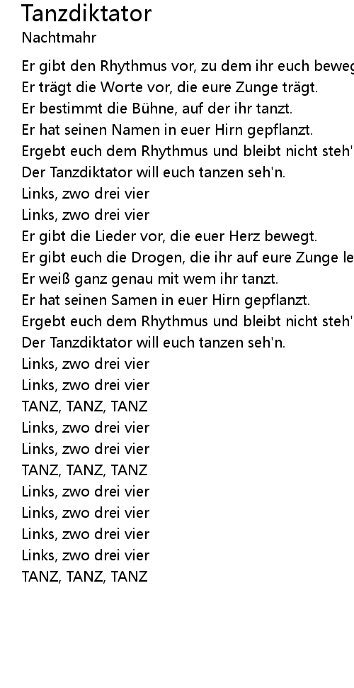 | Der Tanzdiktator will euch tanzen seh' n. | |