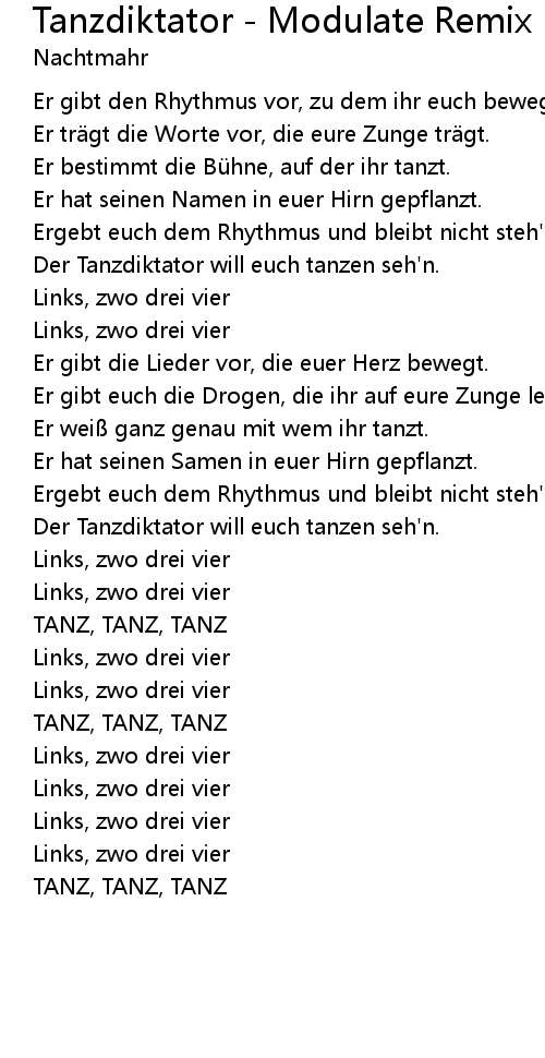 | Der Tanzdiktator will euch tanzen seh' n. | |