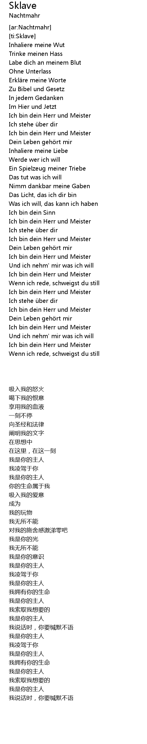 | [02:13.35] | Ich bin dein Herr und Meister |