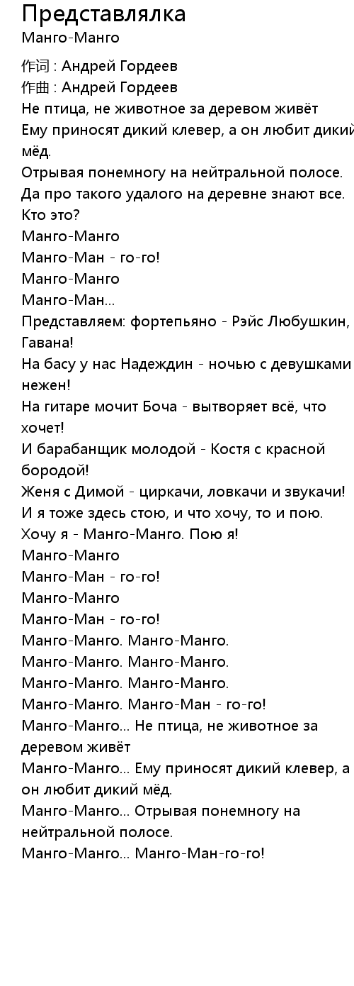 Хочу я - Манго-Манго. Пою я! |