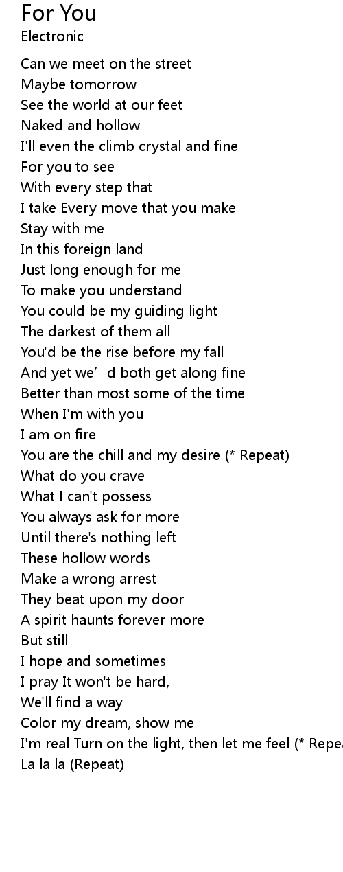 | I' m real Turn on the light, then let me feel Repeat 2 times | |