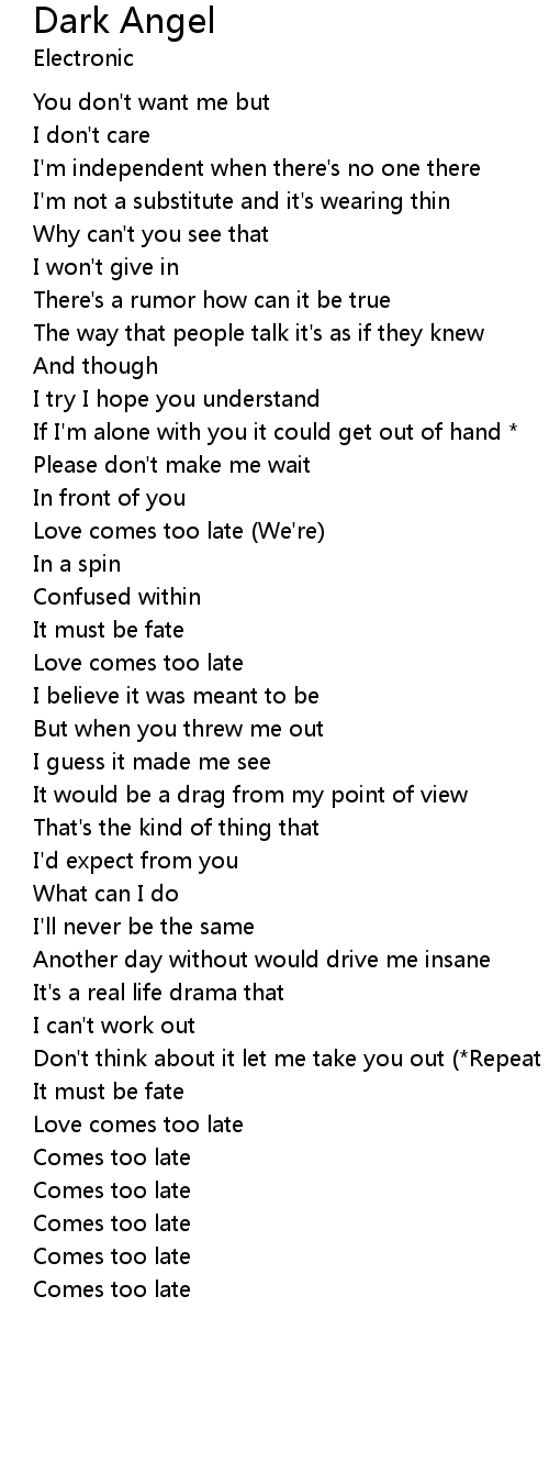 Love comes too late (We're) |