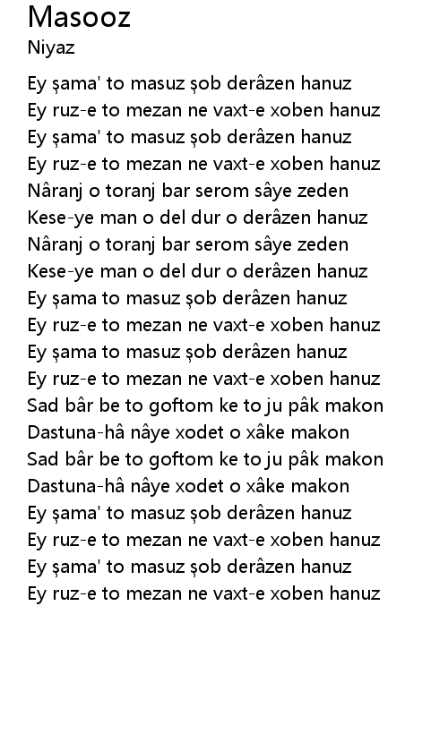 Ey ruz-e to mezan ne vaxt-e xoben hanuz