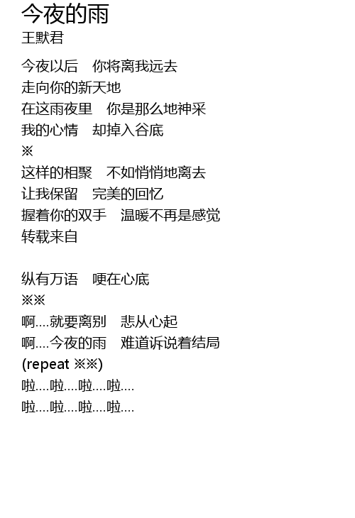 | 啊....今夜的雨 难道诉说着结局 | |