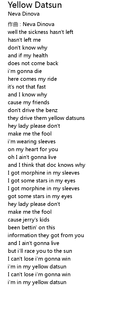 | i' m in my yellow datsun | |