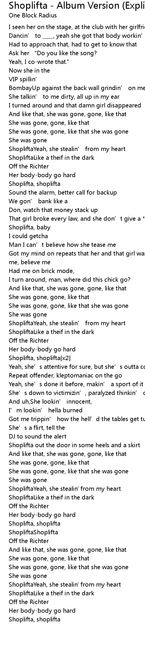| Dancin’ to ____, yeah she got that body workin’ | |