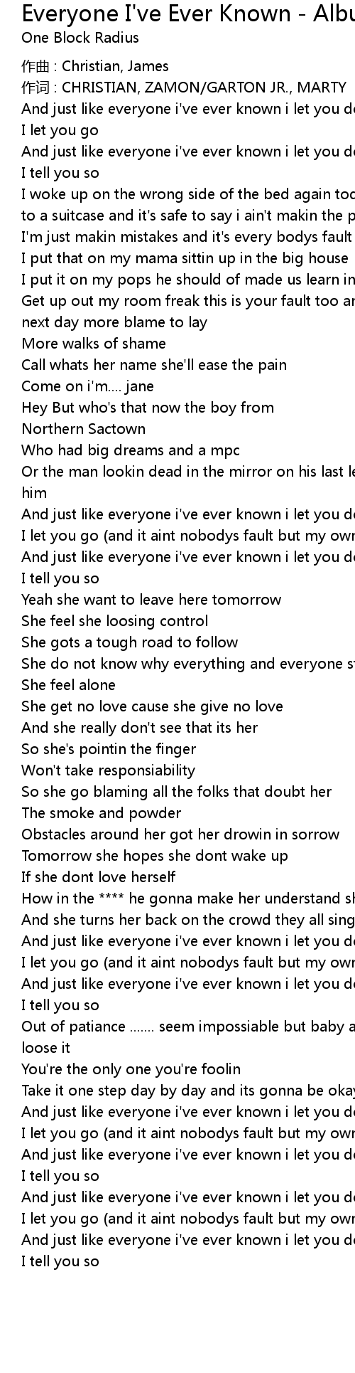 | And just like everyone i' ve ever known i let you down | |