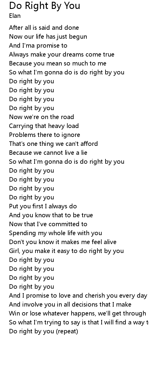 | Do right by you (repeat) |