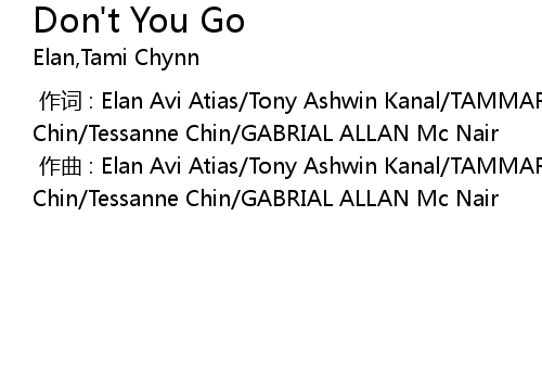 | [00:00.000] | zuò cí : Elan Avi Atias Tony Ashwin Kanal TAMMAR ANNIKA Chin Tessanne Chin GABRIAL ALLAN Mc Nair |
