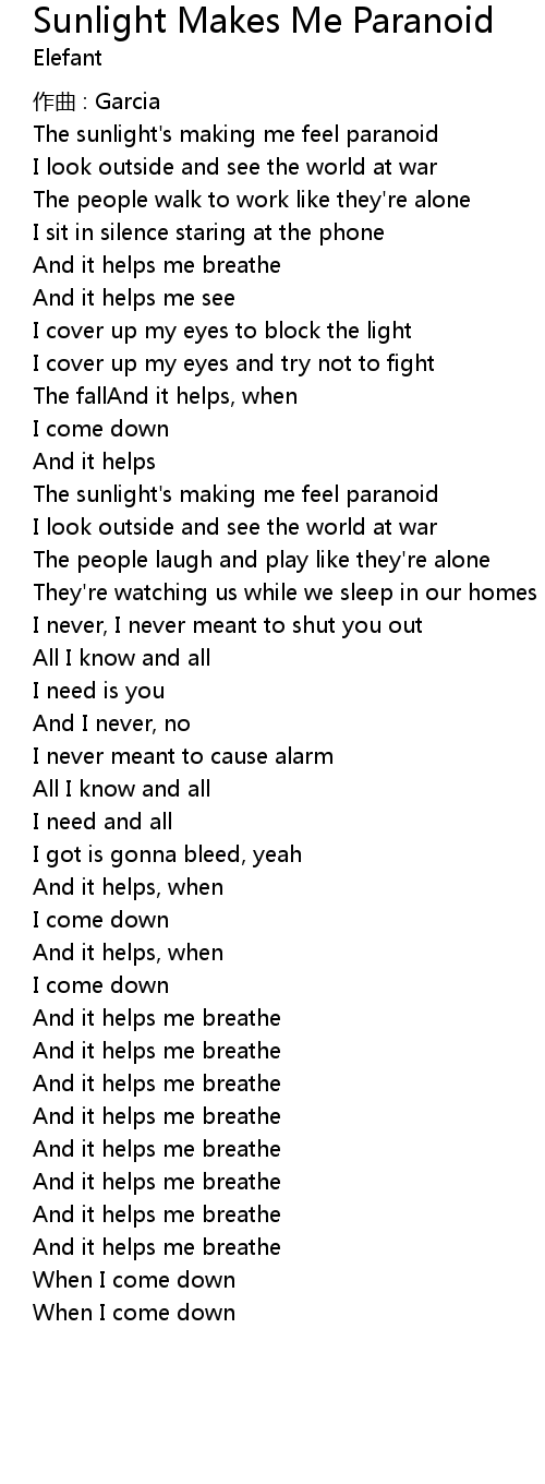 | Song | Sunlight Makes Me Paranoid |