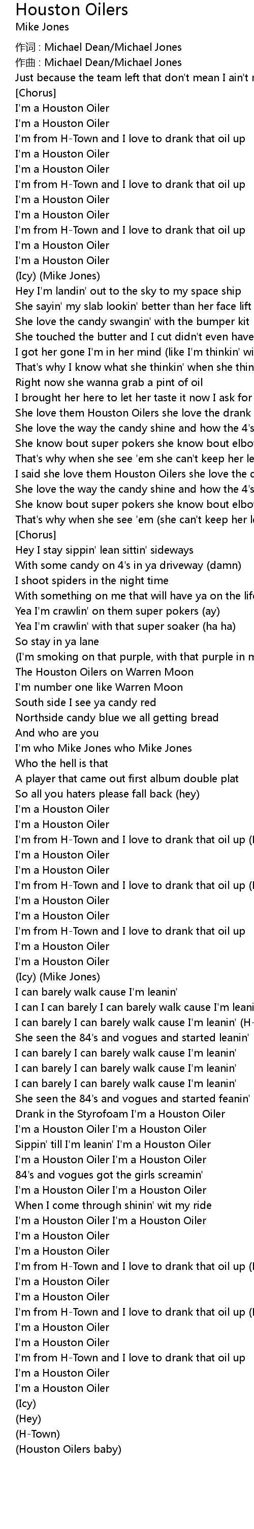 | Sippin' till I' m leanin' I' m a Houston Oiler | |