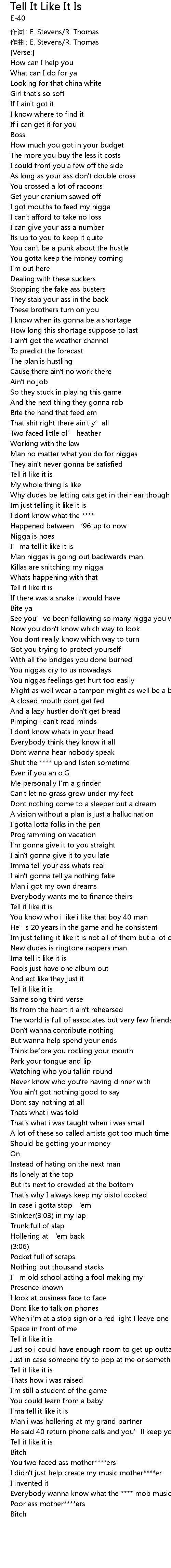 | I' ma tell it like it is | |