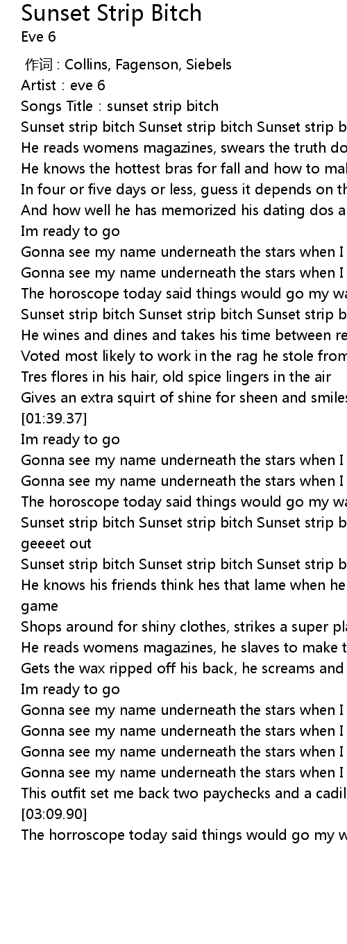| [01:59.19] | Sunset strip bitch Sunset strip bitch Sunset strip bitch |