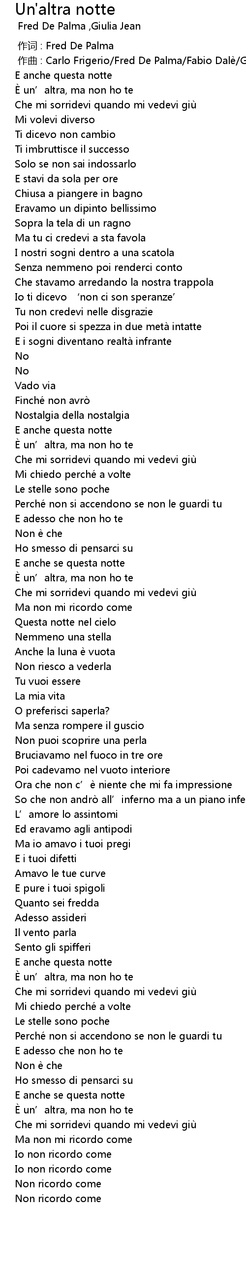 | [00:01.000] | zuò qǔ : Carlo Frigerio Fred De Palma Fabio Dalè Giulia Di Tommasi |