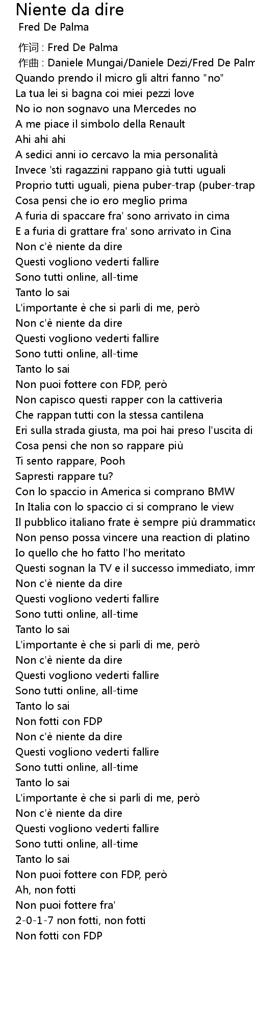 | [00:01.000] | zuò qǔ : Daniele Mungai Daniele Dezi Fred De Palma |