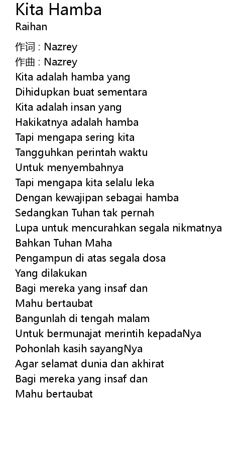 | Song | Kita Hamba |