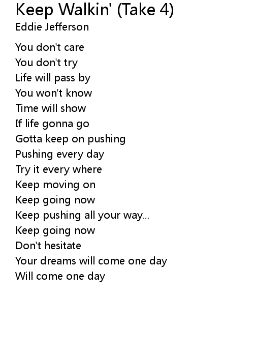 | Song | Keep Walkin' (Take 4) |